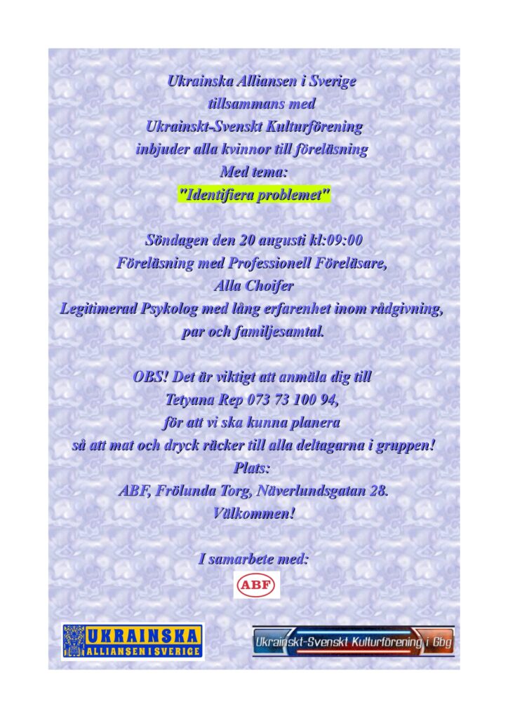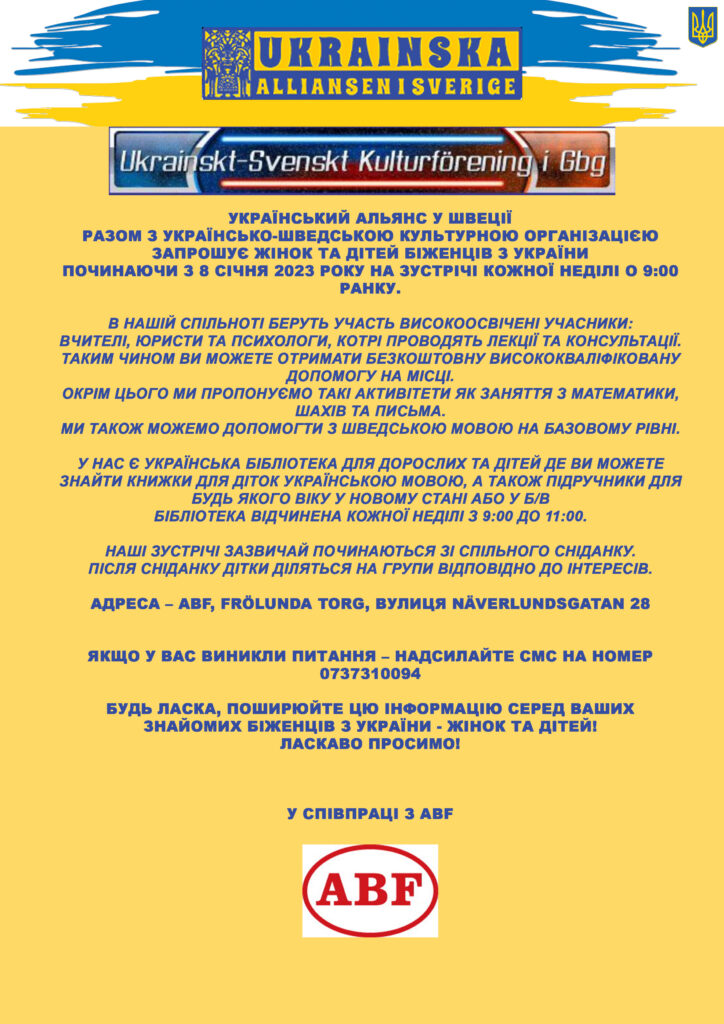 Här kommer inbjudan till den 19 januari kl:9:00 på ABF, Frölunda Torg